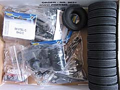 1/14.5スケール、タミヤ製R/Cセミトラクターと連結可能なGoldhoferの低床3軸セミトレーラーキットです。