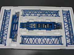 750t吊クレーンです。全高最大210cmです。オーストリアの運送会社FELBERMAYR仕様で水色/グレーです。 車体番号は776になります。 SDWBはメインブーム(Heavy)+デリックブームにラフィングフライジブとサスペンデッドバラストの構成です。 8軸のキャリアはステアリング可能、画像にはありませんがサイドミラーパーツも付属しています。 アウトリガーも展開できます。アウトリガーのシリンダーは内部にタップが切ってあるのでネジの溝が見えないよう工夫されています。 フックは2種類付属しています。ワイヤーの巻き取り動作により各部可動します。 シーブは樹脂製です。 H=210cm