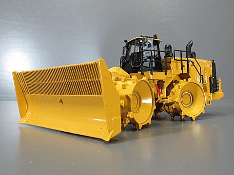 1/50スケールのランドフィルコンパクタです。ホイールはダイキャストパーツで再現されています。 ブレードは上下に動きます。 アーティキュレート動作(ステアリング)可能、キャブの左側ドアが開閉します。 またキャブの屋根を取り外して付属のオペレーターフィギュアをシートに乗せられます。