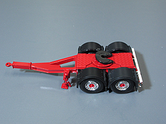 Tekno Specialのフルトレーラーに使用されていた2軸ドーリーの単品です。 リアバンパーのマッドフラップ(泥除け)パーツが外れた状態で、接着剤の跡があります。 マッドフラップは別売りとなりますので、半完成品として発売されています。