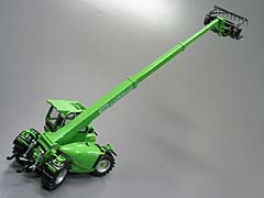 1/32スケールのテレスコピックブームトラクターです。前後ステアリング、アーム伸縮、エンジンカバーが開閉、内部のエンジンも再現されています。 アタッチメント2種とフォーク、回転灯、サイドミラー等が付属、ブームは3段です。 ROS製の1/32スケール牽引オプションやリアアタッチメントが取り付け可能です。size=19.5x8.5x7.2cm