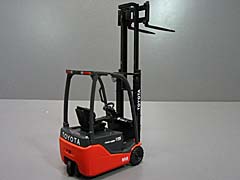 1/23スケール、トヨタの3輪フォークリフトです。後軸はステアリングします。フォークは上下します。パレット1枚付き。L=約13cm