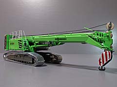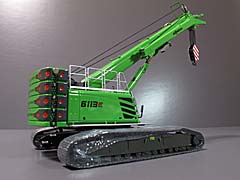 1/50スケール、120t吊テレスコピックブームのクローラークレーンです。 高所作業用のゴンドラが付属しています。