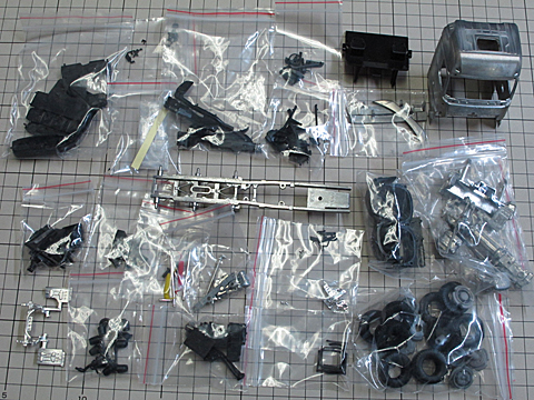 ステアリングやキャブチルトが可能です。 未塗装パーツで塗装が必要です。また一部パーツの取付には穴あけ加工が必要です。 上級者向け。