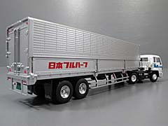 いすゞ810EX 4x2シャーシのセミトラクターと日本フルハーフのセミトレーラーセットです。 キャブカラーは白と水色、トレーラーはシルバーです。