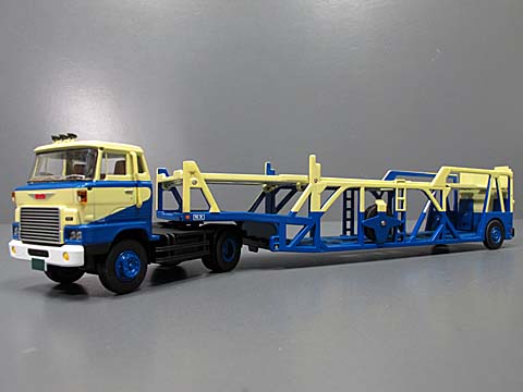 日野HE 4x2セミトラクター+アンチコ(浜名ワークス)ASZ022 車両運搬セミトレーラーです。 紺色とベージュの2トーンカラーになります。