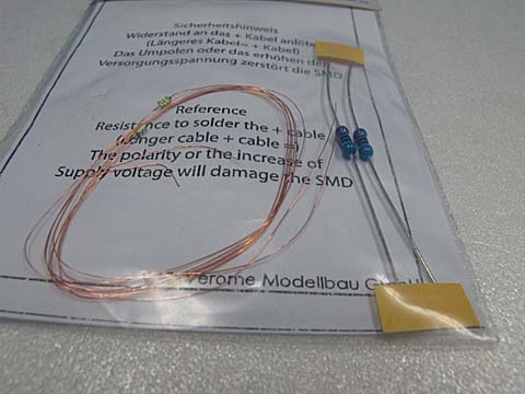 SMDにエナメル線が配線されています。 発光色は白色になります。 7.2Vの電源で使用する為の抵抗が付属しています。 2個入り。