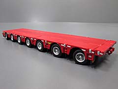 トレーラーはグースネック、3軸ドーリー、7軸ドーリーの構成になります。 ドーリーはそれぞれステアリング可能です。またドーリーのフレームは伸縮します。 3軸ドーリー無しの構成も可能です。 サイドスタンションの出し入れが可能、その上に載せる板や支柱、車幅警告板パーツ、ドーリー連結ピンや工具等が付属しています。