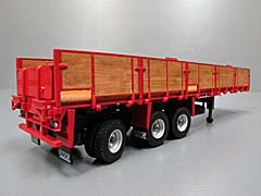 ブロックやレンガを運搬するFLOORの旧タイプ3軸セミトレーラー単品です。 ダブルタイヤになります。パレットローダーは荷台上を前後にスライド出来ます。 取り外しも可能です。またウインチの巻き上げも可能です。 アオリは開閉できます。1・2軸目と3軸目のステアリングが再現されています。
