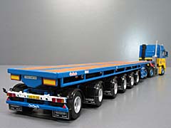 トラクターの前輪とトレーラーの1軸目がステアリング可能、トレーラーの3-6軸はリンクしてステアリングします。 キャブチルトも可能です。荷台の支柱が付属しています。またトレーラーのスペアタイヤは出し入れができます。 オランダのBKV仕様。