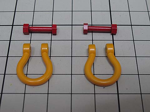 金属製の大型シャックルセットです。500t用が2個入りです。 黄色(ボルトとナットは赤色)塗装済みです。